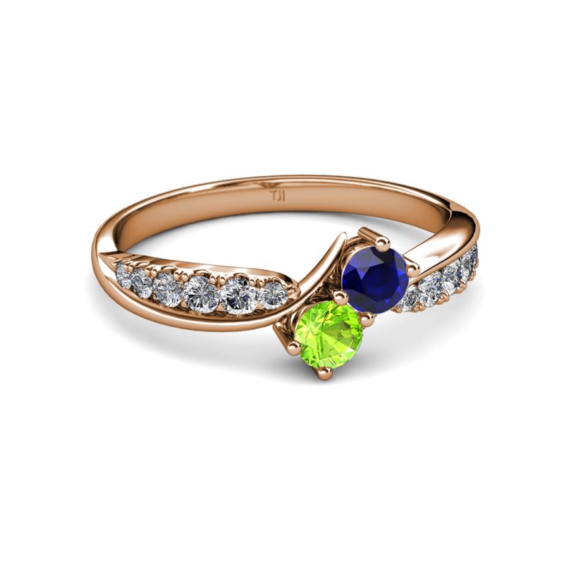 Blue Sapphire and Peridot 2 Stone with Side Diamonds Bypass Engagement Ring 0.92 ct tw in 14K Rose Gold. More Details ...