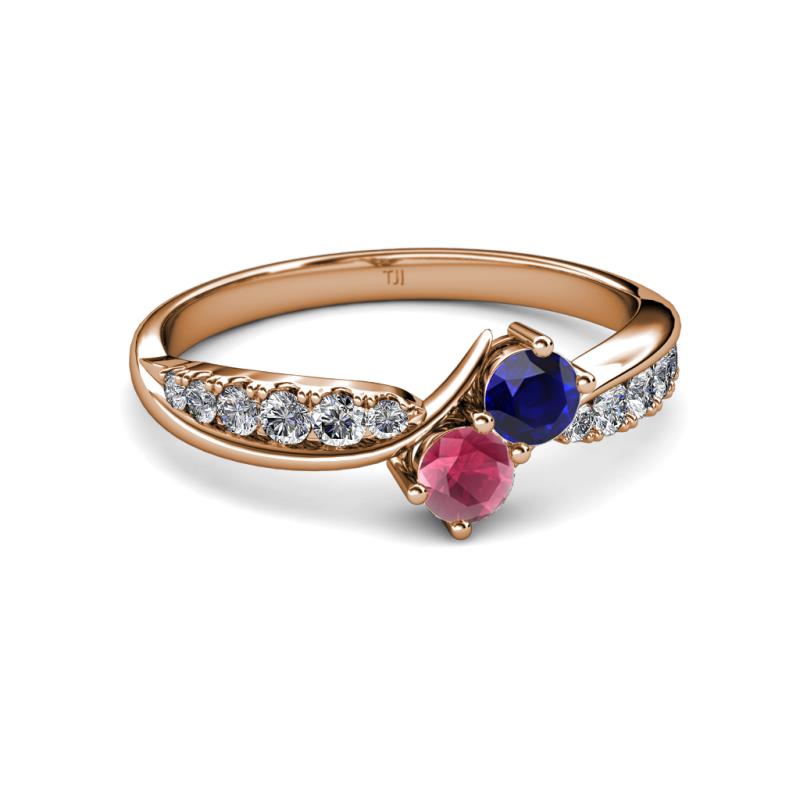 Blue Sapphire and Rhodolite Garnet 2 Stone with Side Diamonds Bypass Engagement Ring 0.92 ct tw in 14K Rose Gold. More Details ...