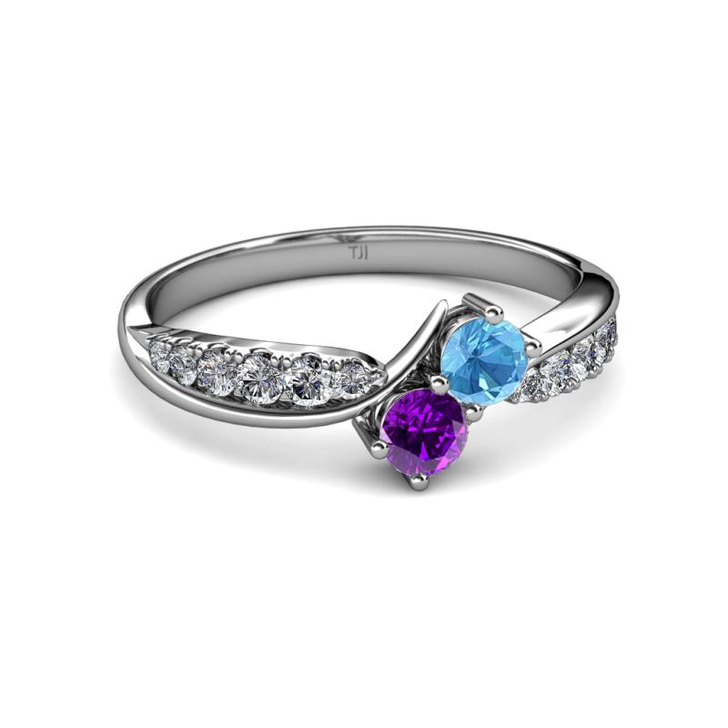 Blue Topaz and Amethyst 2 Stone with Side Diamonds Bypass Engagement Ring 0.72 ct tw in 14K White Gold. More Details ...