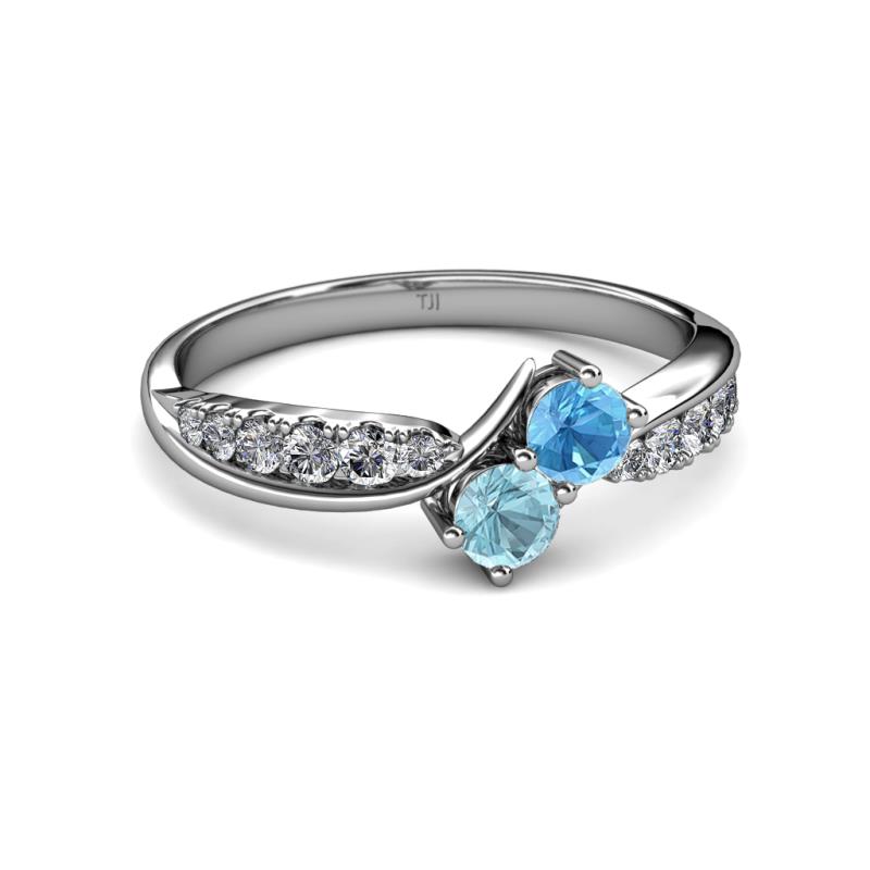 Blue Topaz and Aquamarine 2 Stone with Side Diamonds Bypass Engagement Ring 0.72 ct tw in 14K White Gold. More Details ...