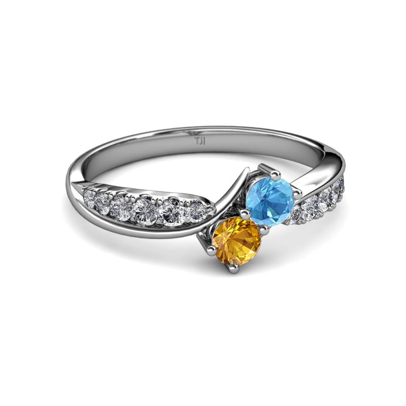 Blue Topaz and Citrine 2 Stone with Side Diamonds Bypass Engagement Ring 0.72 ct tw in 14K White Gold. More Details ...