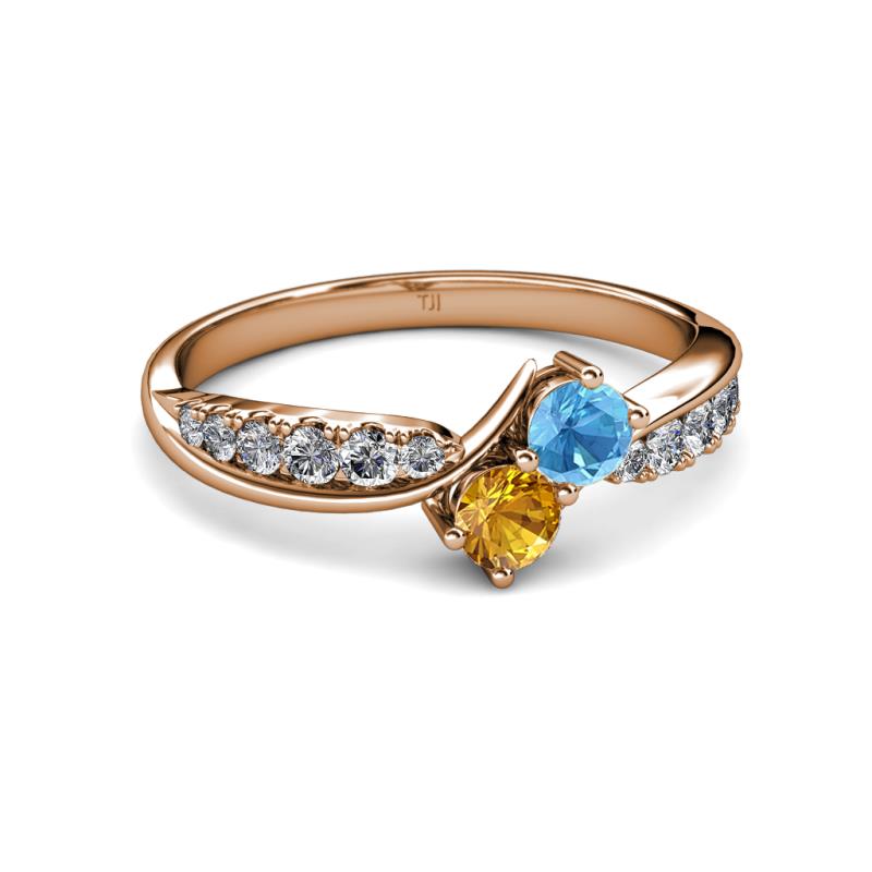 Blue Topaz and Citrine 2 Stone with Side Diamonds Bypass Engagement Ring 0.72 ct tw in 14K Rose Gold. More Details ...