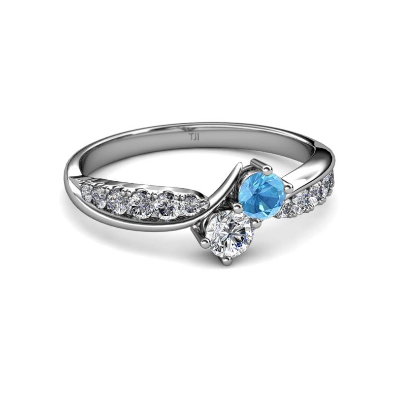 0.77 ctw Blue Topaz and Diamond (4.00 mm) accented Natural Diamonds Women Two Stone Bypass Engagement Ring in 14K White Gold. More Details ...