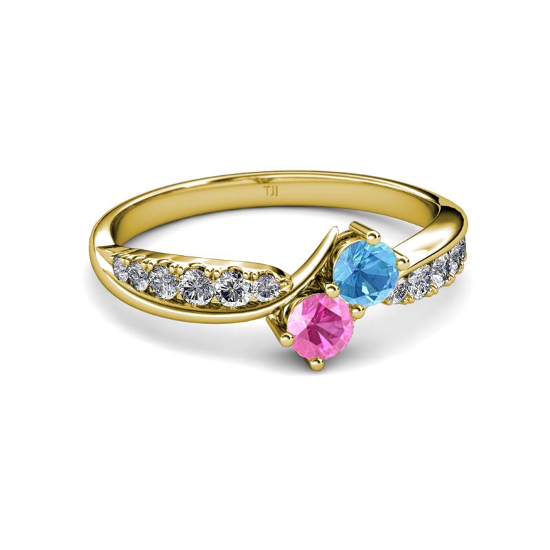 Blue Topaz and Pink Sapphire 2 Stone with Side Diamonds Bypass Engagement Ring 0.78 ct tw in 14K Yellow Gold. More Details ...