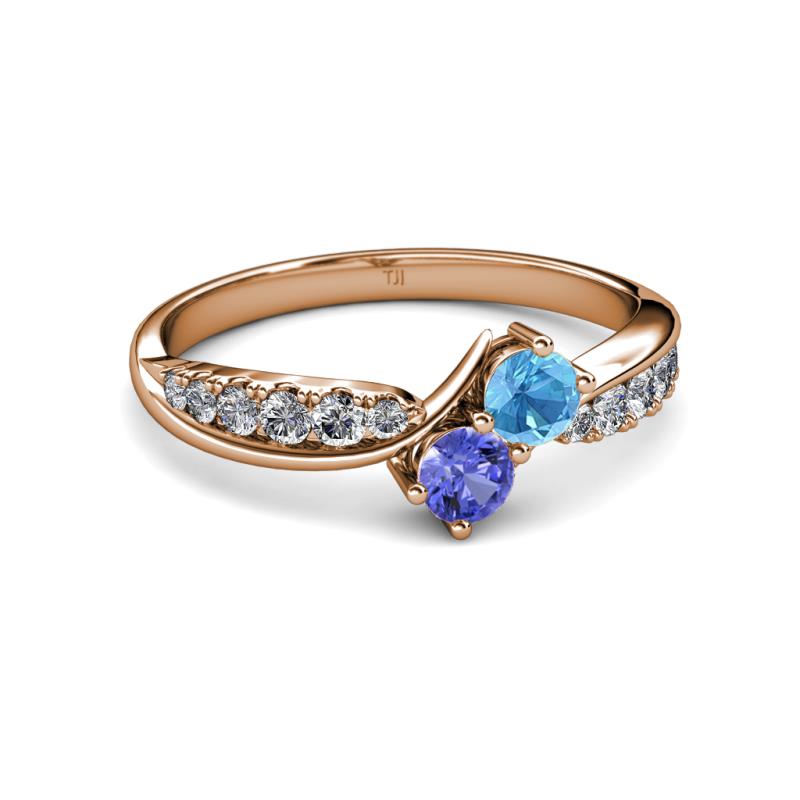 Blue Topaz and Tanzanite 2 Stone with Side Diamonds Bypass Engagement Ring 0.75 ct tw in 14K Rose Gold. More Details ...