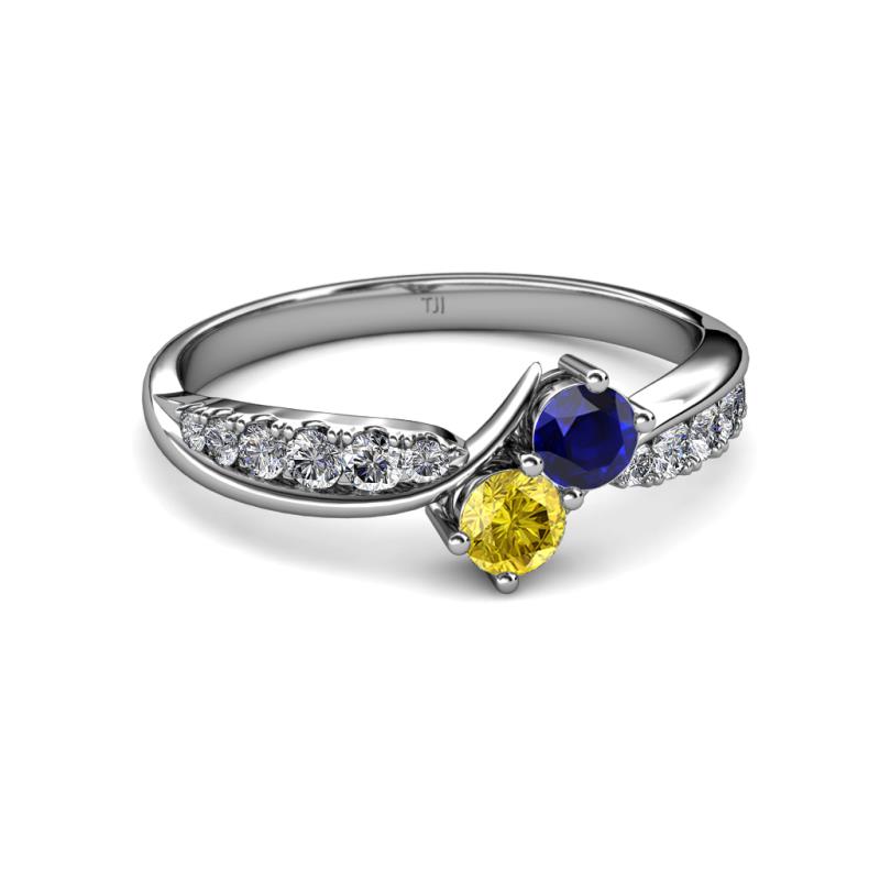 Blue and Yellow Sapphire 2 Stone with Side Diamonds Bypass Engagement Ring 0.86 ct tw in 14K White Gold. More Details ...