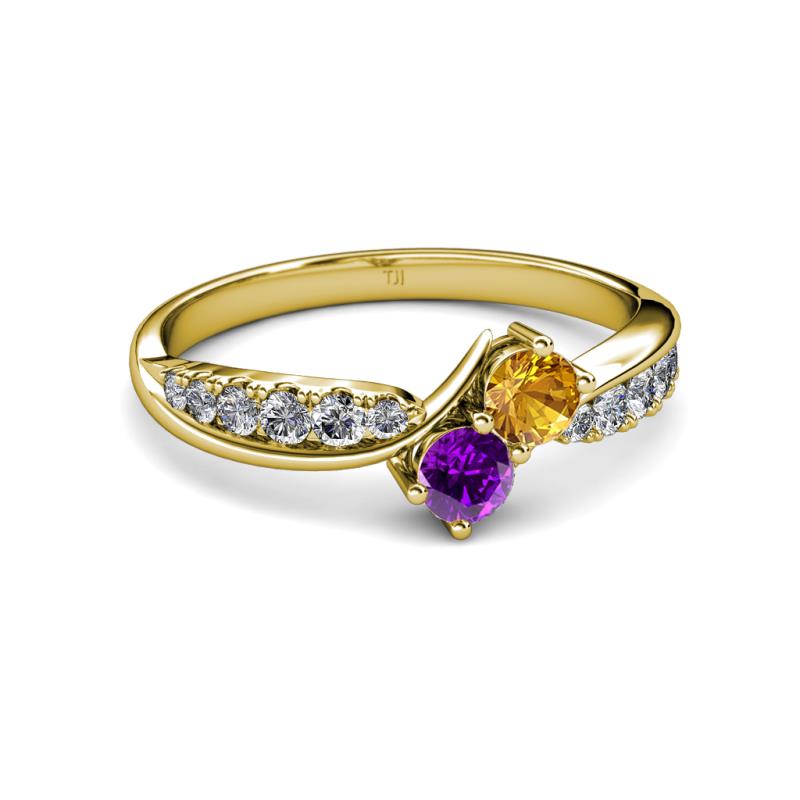 Citrine and Amethyst 2 Stone with Side Diamonds Bypass Engagement Ring 0.70 ct tw in 14K Yellow Gold. More Details ...