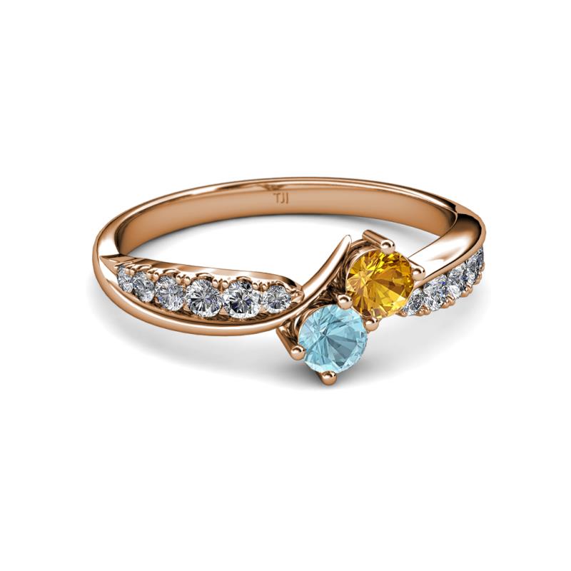 Citrine and Aquamarine 2 Stone with Side Diamonds Bypass Engagement Ring 0.70 ct tw in 14K Rose Gold. More Details ...