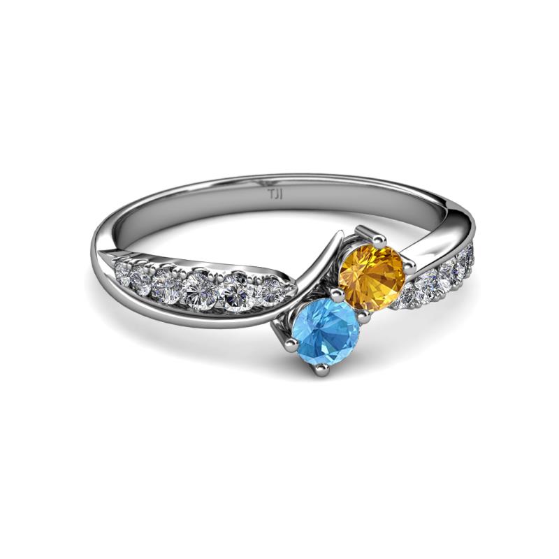 Citrine and Blue Topaz 2 Stone with Side Diamonds Bypass Engagement Ring 0.72 ct tw in 14K White Gold. More Details ...