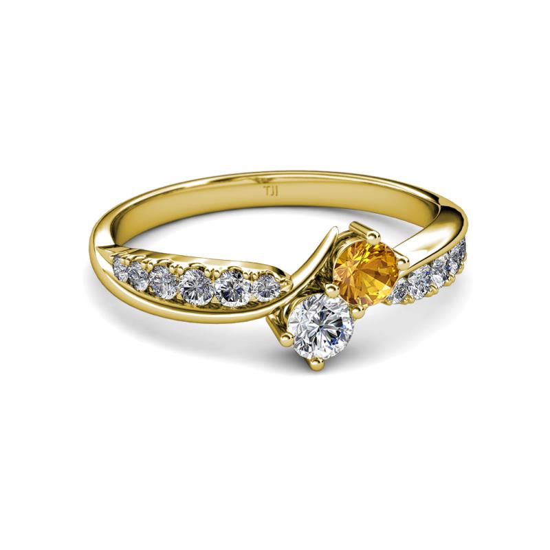 0.75 ctw Citrine and Diamond (4.00 mm) accented Natural Diamonds Women Two Stone Bypass Engagement Ring in 14K Yellow Gold. More Details ...