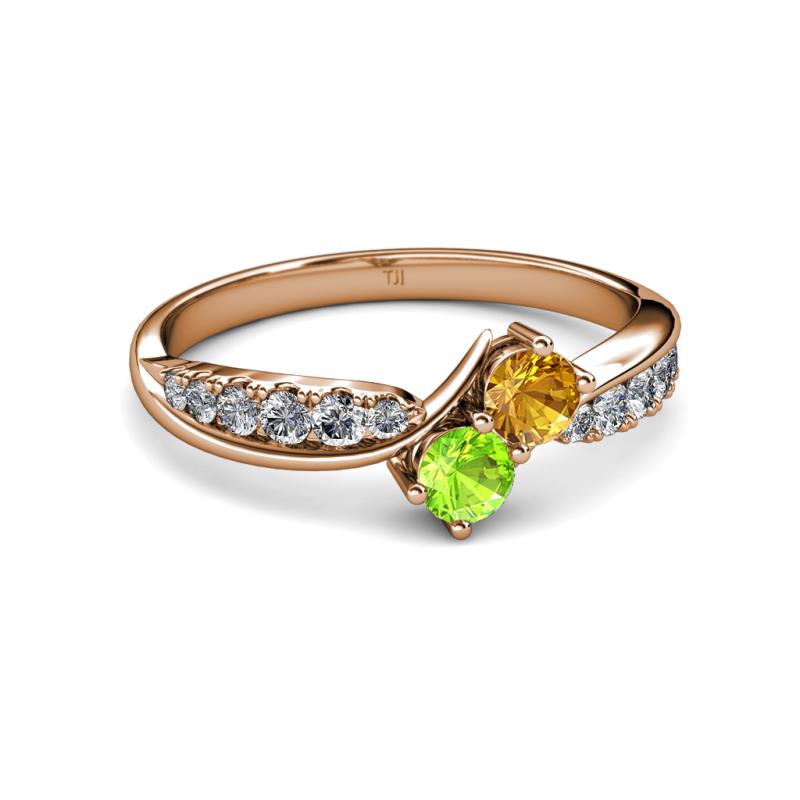 Citrine and Peridot 2 Stone with Side Diamonds Bypass Engagement Ring 0.82 ct tw in 14K Rose Gold. More Details ...