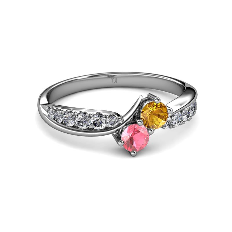 Citrine and Pink Tourmaline 2 Stone with Side Diamonds Bypass Engagement Ring 0.70 ct tw in 14K White Gold. More Details ...