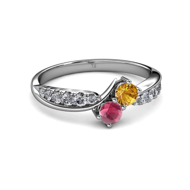 Citrine and Rhodolite Garnet 2 Stone with Side Diamonds Bypass Engagement Ring 0.82 ct tw in 14K White Gold. More Details ...