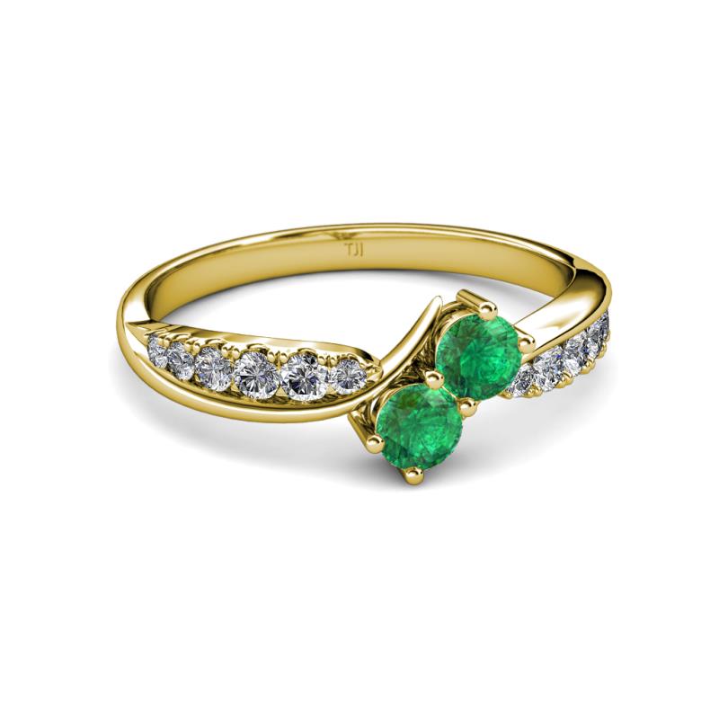Emerald 2 Stone with Side Diamonds Womens Bypass Engagement Ring 0.70 ctw 14K Yellow Gold More Details ...