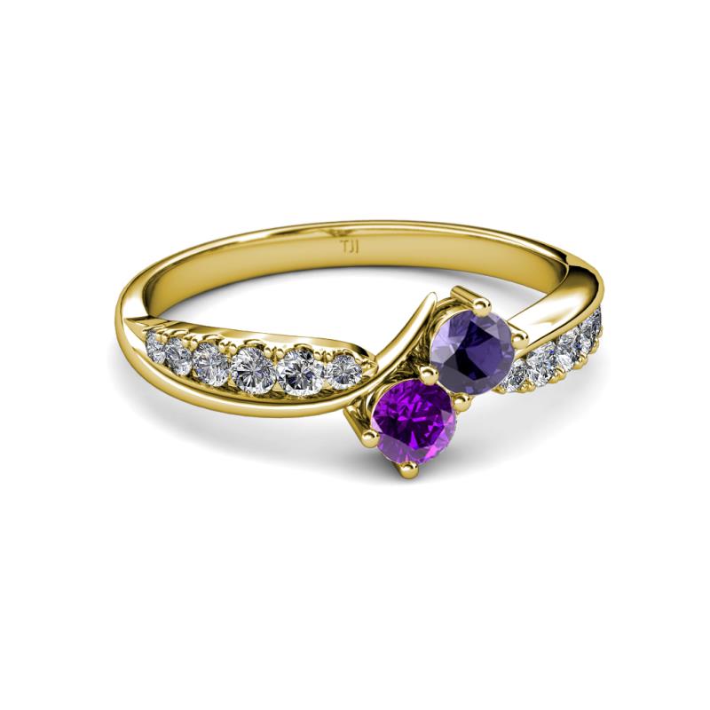 Iolite and Amethyst 2 Stone with Side Diamonds Bypass Engagement Ring 0.70 ct tw in 14K Yellow Gold. More Details ...