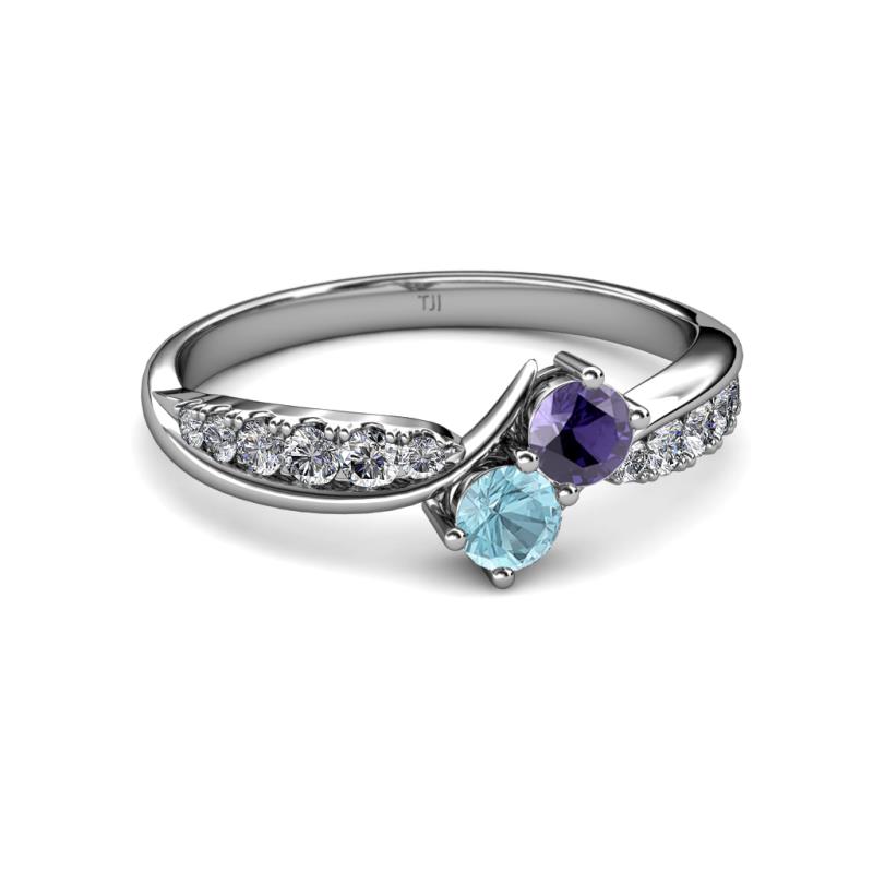 Iolite and Aquamarine 2 Stone with Side Diamonds Bypass Engagement Ring 0.70 ct tw in 14K White Gold. More Details ...