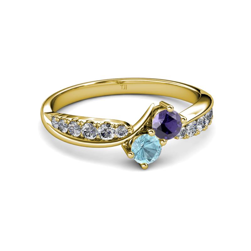 Iolite and Aquamarine 2 Stone with Side Diamonds Bypass Engagement Ring 0.70 ct tw in 14K Yellow Gold. More Details ...