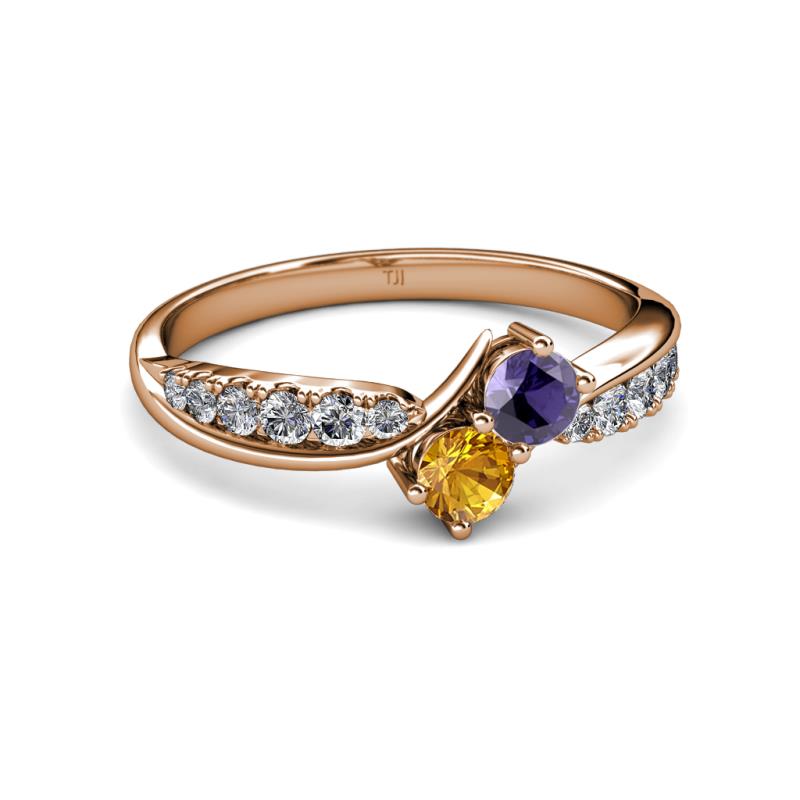 Iolite and Citrine 2 Stone with Side Diamonds Bypass Engagement Ring 0.70 ct tw in 14K Rose Gold. More Details ...