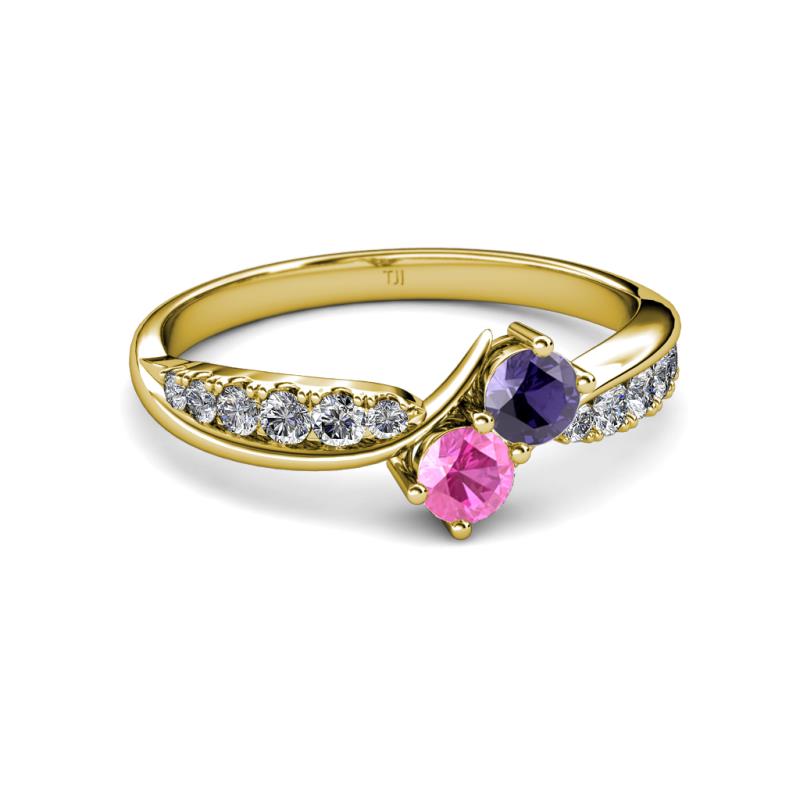 Iolite and Pink Sapphire 2 Stone with Side Diamonds Bypass Engagement Ring 0.76 ct tw in 14K Yellow Gold. More Details ...