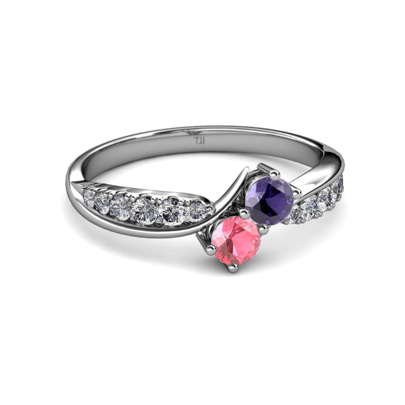 Iolite and Pink Tourmaline 2 Stone with Side Diamonds Bypass Engagement Ring 0.70 ct tw in 14K White Gold. More Details ...