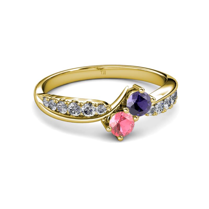 Iolite and Pink Tourmaline 2 Stone with Side Diamonds Bypass Engagement Ring 0.70 ct tw in 14K Yellow Gold. More Details ...