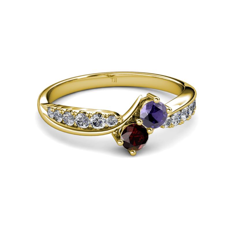 Iolite and Red Garnet 2 Stone with Side Diamonds Bypass Engagement Ring 0.82 ct tw in 14K Yellow Gold. More Details ...