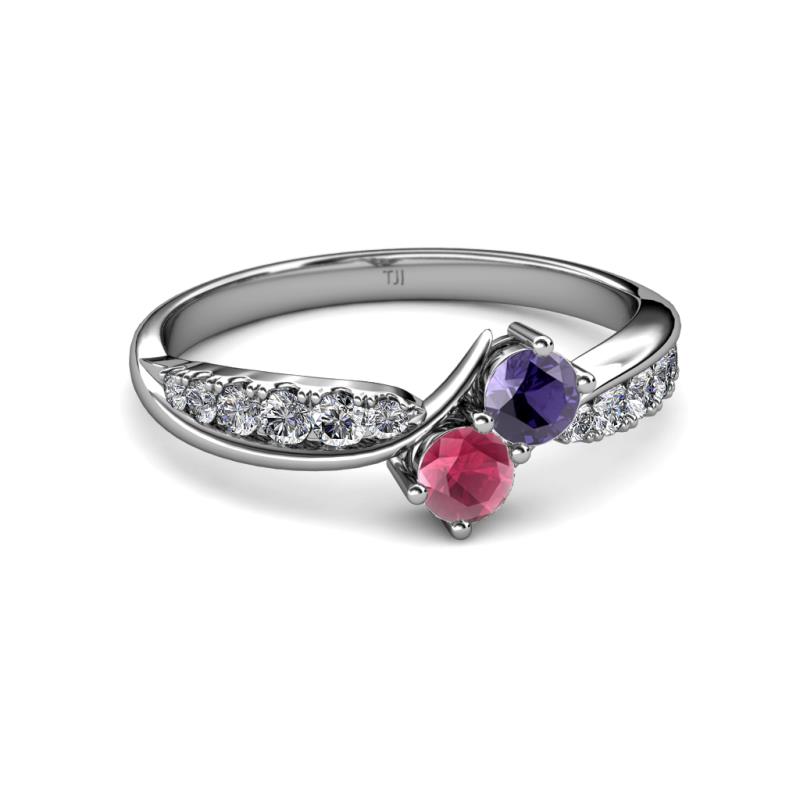 Iolite and Rhodolite Garnet 2 Stone with Side Diamonds Bypass Engagement Ring 0.82 ct tw in 14K White Gold. More Details ...