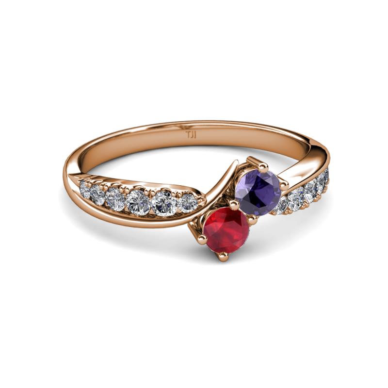 Iolite and Ruby 2 Stone with Side Diamonds Bypass Engagement Ring 0.76 ct tw in 14K Rose Gold. More Details ...