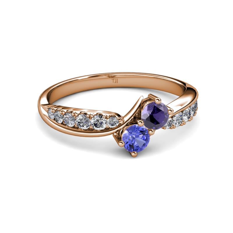 Iolite and Tanzanite 2 Stone with Side Diamonds Bypass Engagement Ring 0.73 ct tw in 14K Rose Gold. More Details ...