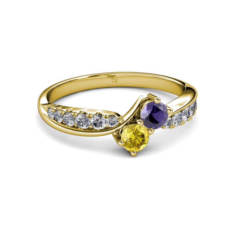 Iolite and Yellow Sapphire 2 Stone with Side Diamonds Bypass Engagement Ring 0.76 ct tw in 14K Yellow Gold. More Details ...