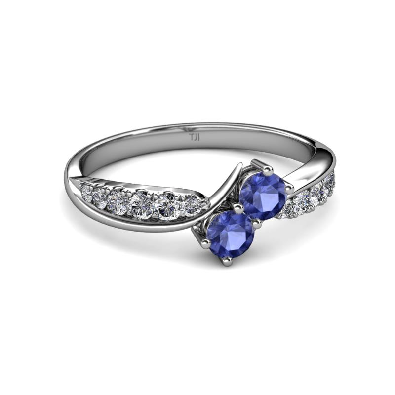 Iolite 2 Stone with Side Diamonds Bypass Engagement Ring 0.70 ct tw in 14K White Gold. More Details ...