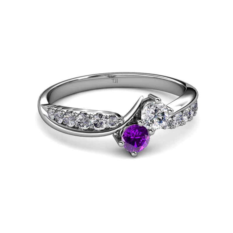 A Bypass Ring with a contemporary twist where center Lab Grown Diamond and Amethyst representing love & friendship are beautifully captured in the twisted split with Lab Grown Diamond illuminating the shoulders signifying your unbreakable bond.