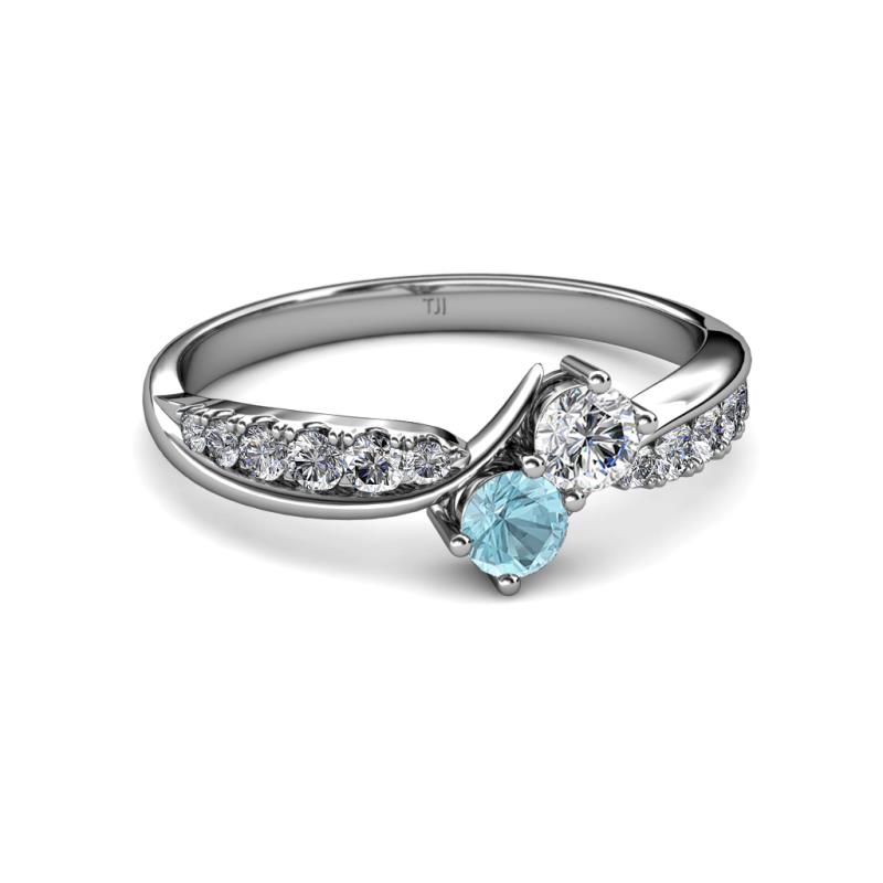 A Bypass Ring with a contemporary twist where center Lab Grown Diamond and Aquamarine representing love & friendship are beautifully captured in the twisted split with Lab Grown Diamond illuminating the shoulders signifying your unbreakable bond.