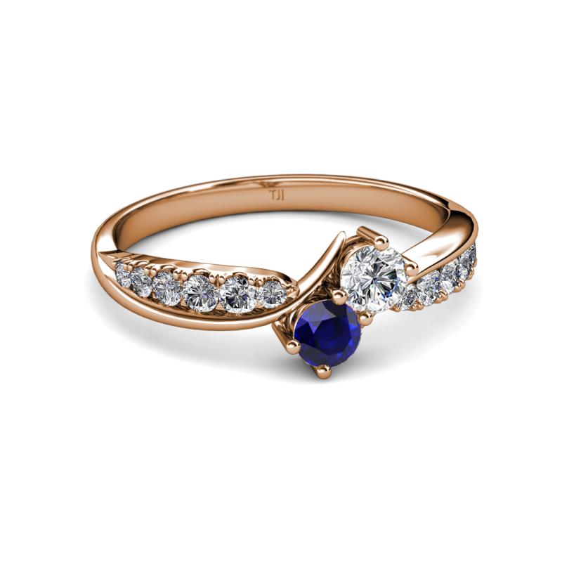 0.85 ctw Lab Grown Diamond & Blue Sapphire accented Side Lab Grown Diamond Two Stone Bypass Engagement Ring in 10K Rose Gold. More Details ...