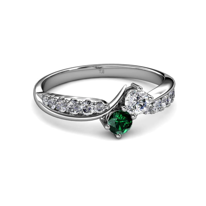 0.75 ctw Lab Grown Diamond & Emerald accented Side Lab Grown Diamond Two Stone Bypass Engagement Ring in Platinum. More Details ...