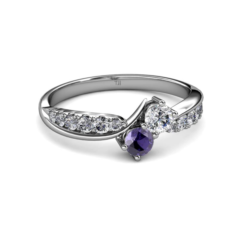 0.75 ctw Lab Grown Diamond & Iolite accented Side Lab Grown Diamond Two Stone Bypass Engagement Ring in 10K White Gold. More Details ...