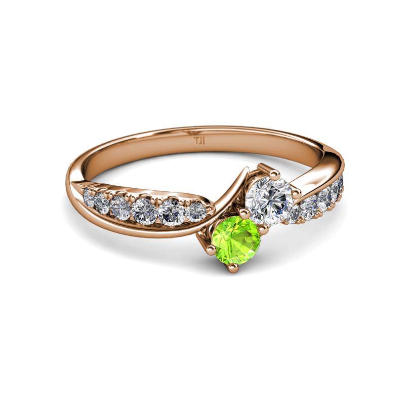 0.87 ctw Lab Grown Diamond & Peridot accented Side Lab Grown Diamond Two Stone Bypass Engagement Ring in 14K Rose Gold. More Details ...
