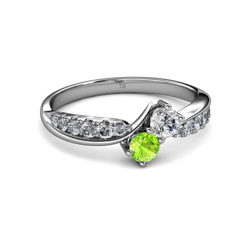 A Bypass Ring with a contemporary twist where center Lab Grown Diamond and Peridot representing love & friendship are beautifully captured in the twisted split with Lab Grown Diamond illuminating the shoulders signifying your unbreakable bond.