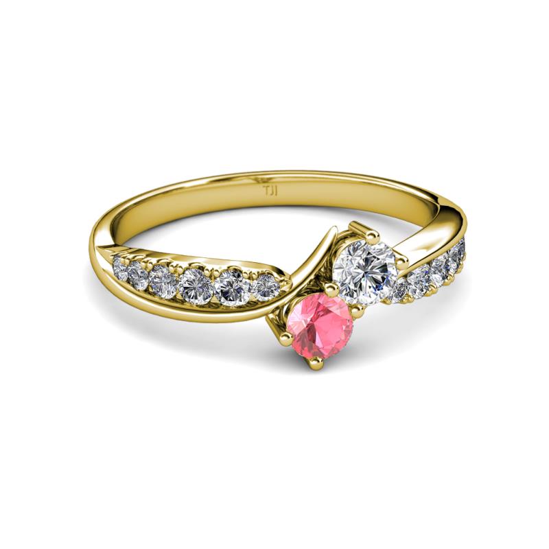 0.75 ctw Lab Grown Diamond & Pink Tourmaline accented Side Lab Grown Diamond Two Stone Bypass Engagement Ring in 18K Yellow Gold. More Details ...