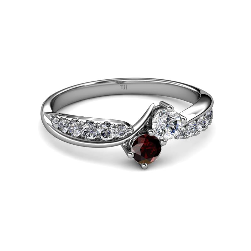 A Bypass Ring with a contemporary twist where center Lab Grown Diamond and Red Garnet representing love & friendship are beautifully captured in the twisted split with Lab Grown Diamond illuminating the shoulders signifying your unbreakable bond.