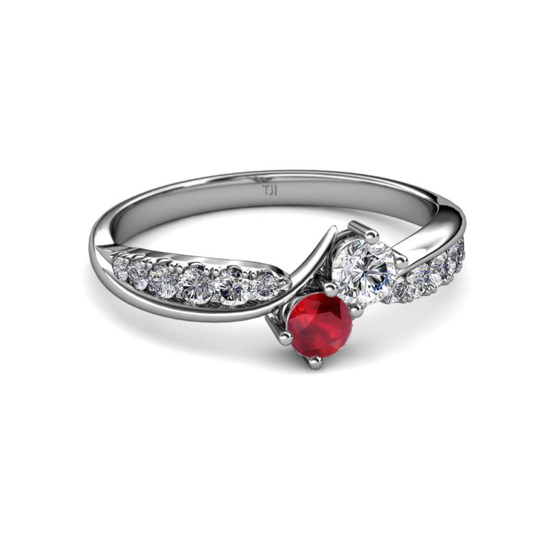0.82 ctw Lab Grown Diamond & Ruby accented Side Lab Grown Diamond Two Stone Bypass Engagement Ring in 14K White Gold. More Details ...