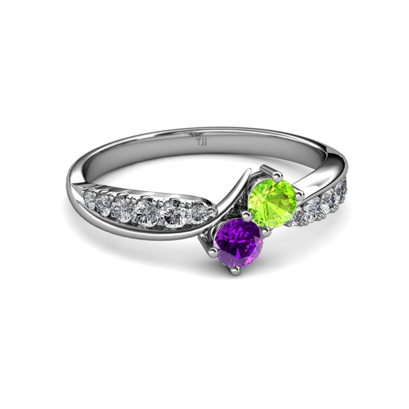 Peridot and Amethyst 2 Stone with Side Diamonds Bypass Engagement Ring 0.82 ct tw in 14K White Gold. More Details ...