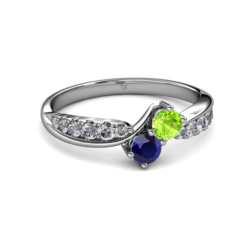 Peridot and Blue Sapphire 2 Stone with Side Diamonds Bypass Engagement Ring 0.92 ct tw in 14K White Gold. More Details ...