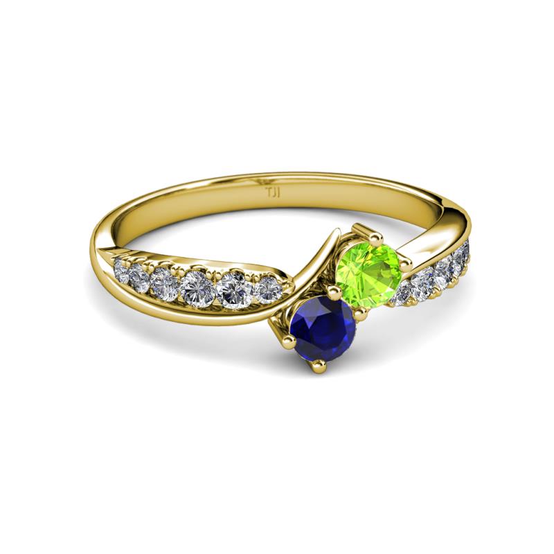 Peridot and Blue Sapphire 2 Stone with Side Diamonds Bypass Engagement Ring 0.92 ct tw in 14K Yellow Gold. More Details ...