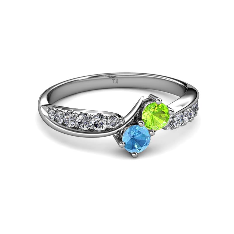 Peridot and Blue Topaz 2 Stone with Side Diamonds Bypass Engagement Ring 0.84 ct tw in 14K White Gold. More Details ...