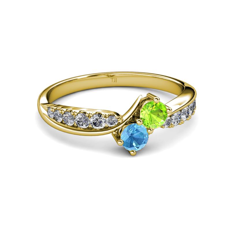 Peridot and Blue Topaz 2 Stone with Side Diamonds Bypass Engagement Ring 0.84 ct tw in 14K Yellow Gold. More Details ...