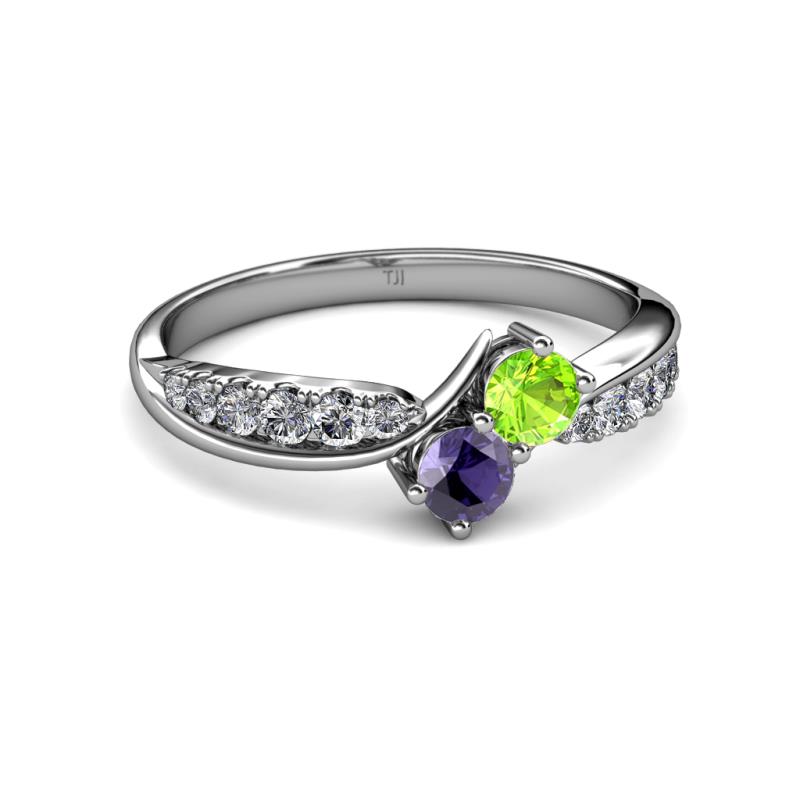 Peridot and Iolite 2 Stone with Side Diamonds Bypass Engagement Ring 0.82 ct tw in 14K White Gold. More Details ...