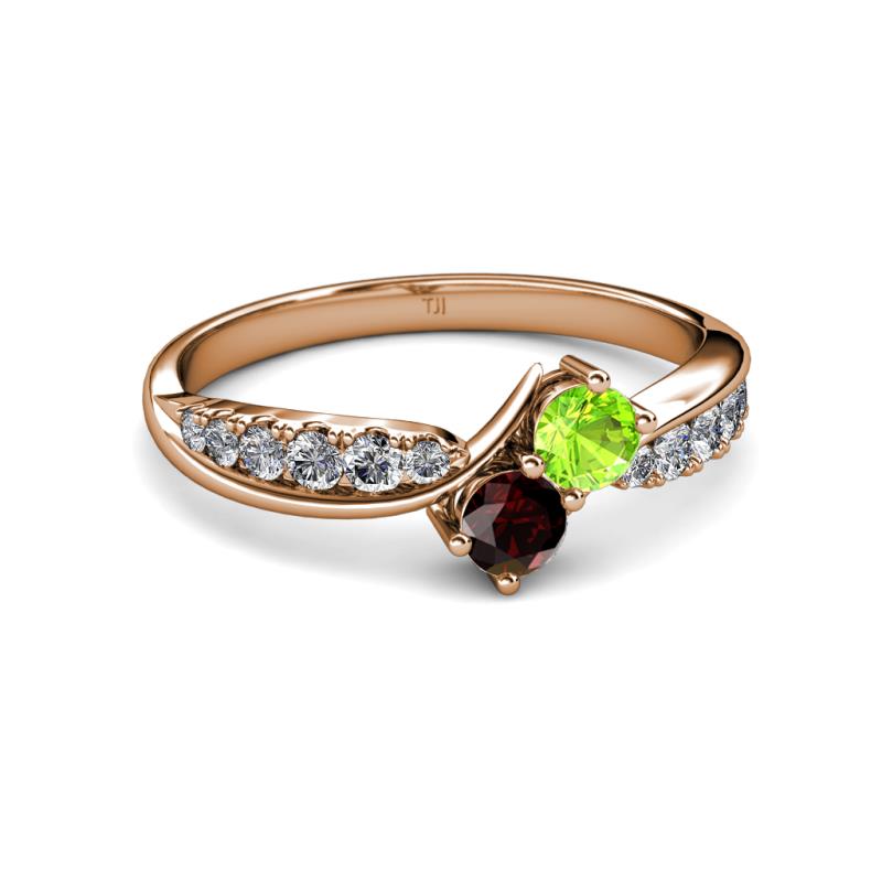 Peridot and Red Garnet 2 Stone with Side Diamonds Bypass Engagement Ring 0.94 ct tw in 14K Rose Gold. More Details ...