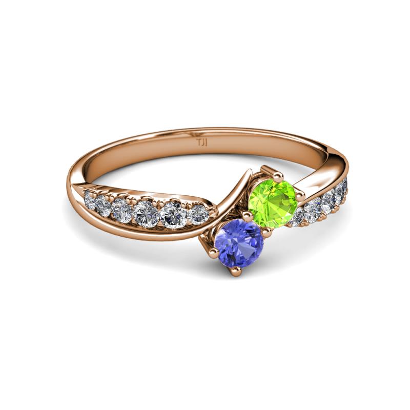 Peridot and Tanzanite 2 Stone with Side Diamonds Bypass Engagement Ring 0.85 ct tw in 14K Rose Gold. More Details ...