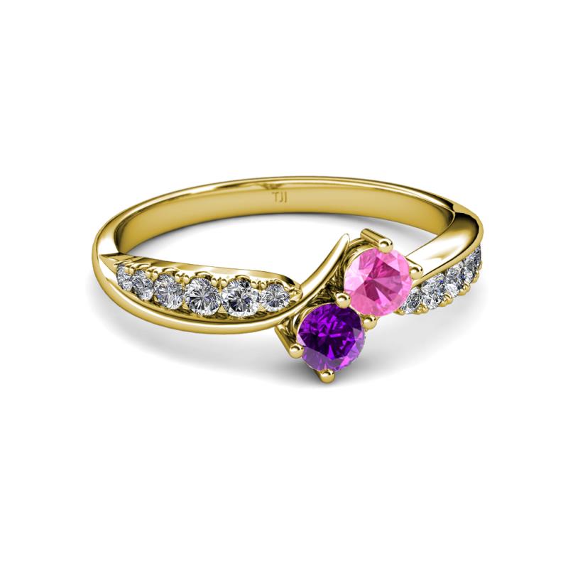 Pink Sapphire and Amethyst 2 Stone with Side Diamonds Bypass Engagement Ring 0.76 ct tw in 14K Yellow Gold. More Details ...